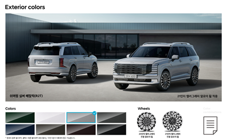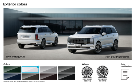 캘리그래피 전용 디자인(20인치 알로이 휠 & 타이어, 라디에이터 그릴 & 가니쉬, 인테이크 그릴, 스키드 플레이트, 바디컬러 클래딩), 다이내믹 웰컴/에스코트 라이트(1종)