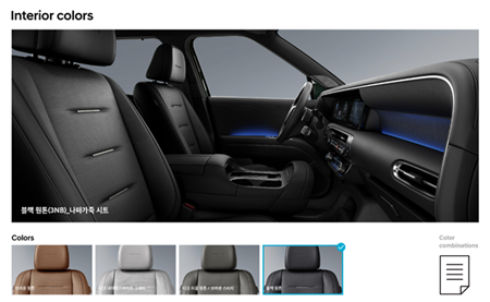 파노라믹 커브드 디스플레이, 클러스터(12.3인치 컬러 LCD), 인조가죽 감싸기(크래쉬패드 가니쉬, 콘솔 사이드, 도어 암레스트), 멜란지 니트 내장재(헤드라이닝/필라/선바이저), 메탈 도어스커프