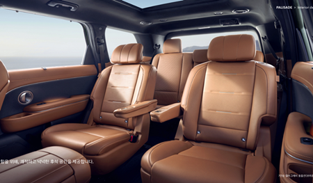 1열 릴렉션 컴포트 시트(레그레스트), 운전석 스마트 자세제어 시스템, 2열 6:4 분할 시트(전동 폴딩, 슬라이딩, 전동 리클라이닝, 윙아웃 헤드레스트), 2열 리모트 폴딩 & 언폴딩, 2열 통풍시트, 3열 전동 6:4 분할 시트(폴드 & 다이브, 슬라이딩, 리클라이닝), 3열 열선시트